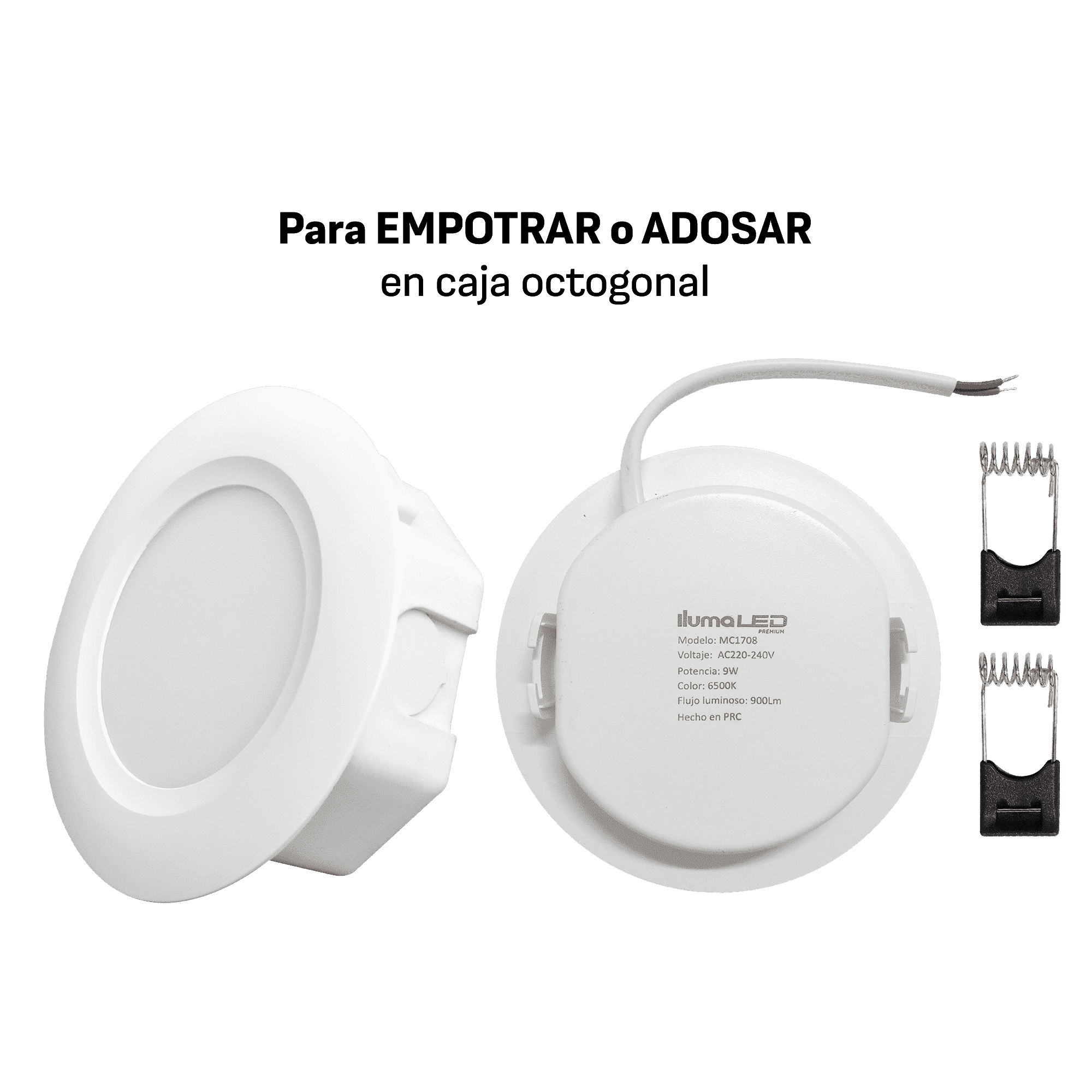 | No recalienta. Ideal para adosar y colocar en caja octogonal. |